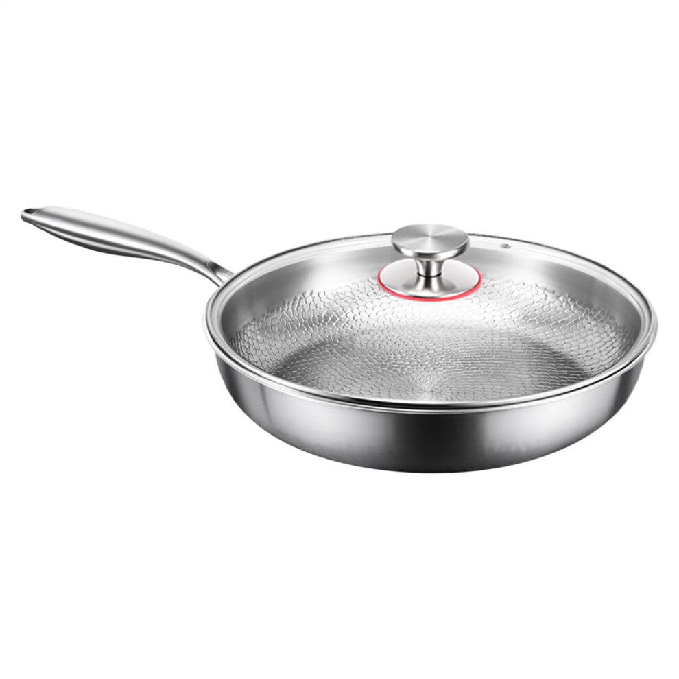 28cm Nonstick Frying Pan with Lid, Stainless Steel Skillet for Induction Cooktop and Camping