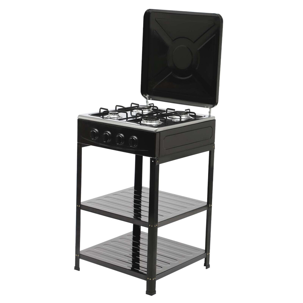Portable 4 Burner Gas Stove with Wind Blocking Cover and Stand, Manual Ignition Cooktop for Camping RV Outdoor Home (Black)