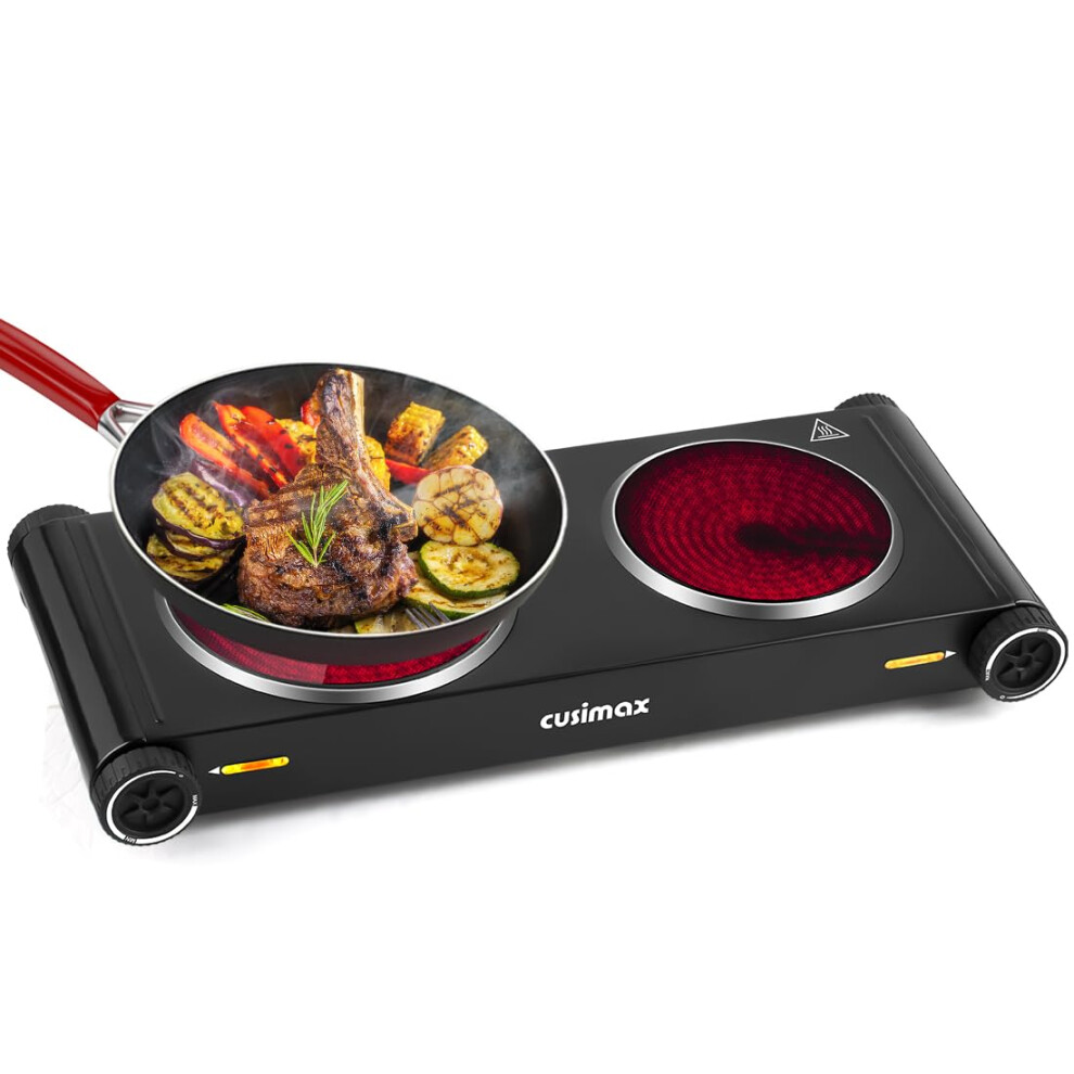 CUSIMAX Double Hobs with Concealed Handle, 2400W Electric Hob, Hot Plate for Cooking Portable Infrared Cooktop, Camping Hob, Dual Temperature