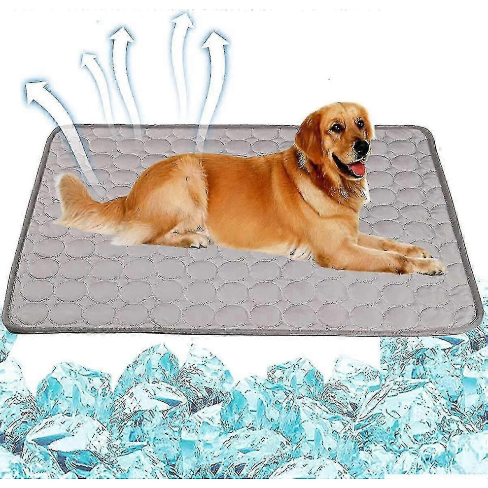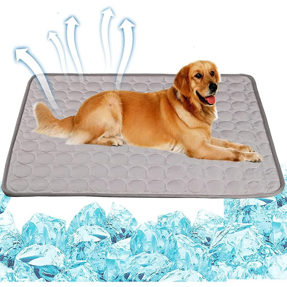 (Gray, L) Dog Cooling Mat Sleeping Cooling Pad Washable Ice Silk Cool Blanket For Kennel Sofa Bed
