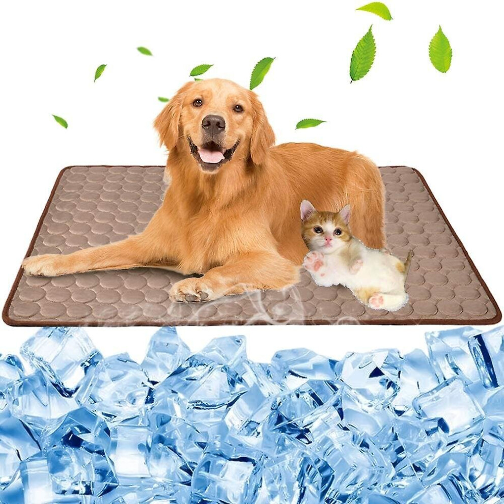 (Coffee, L) Dog Cooling Mat Sleeping Cooling Pad Washable Ice Silk Cool Blanket For Kennel Sofa Bed