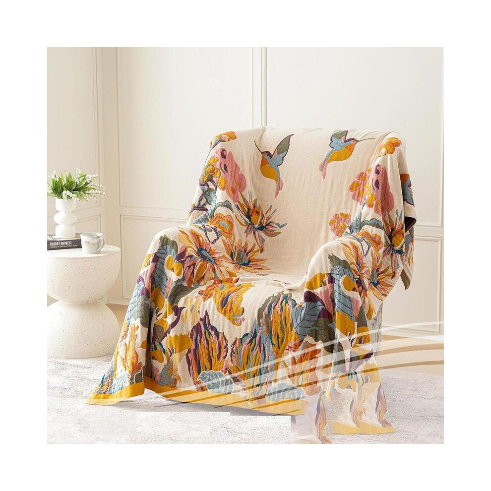 (Multicolor, 60*80inch) Floral & Bird Print Blanket, 1 Count Soft Comfortable Throw Blanket, Cool Bedroom Bedding Blanket for Home Bedroom Sofa Couch