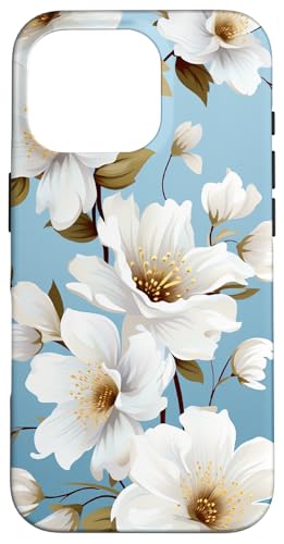 White Floral Cool Flowers Aesthetic Case for iPhone 16 Pro