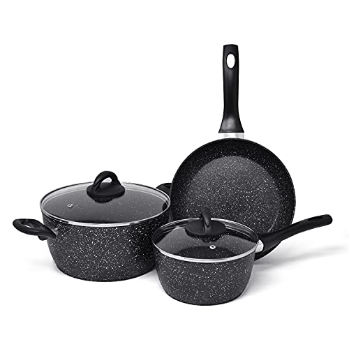 CLMJHG Nonstick Cookware Set 3 Pieces,Induction Pots and Pans Sets, Induction Frying Pan, Chemical-Free Kitchen Sets with Stay-Cool Handle, Saucepan, Stock Pot, Skillet Stone Set