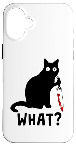 What? Murderous Black Cat Holding A Knife Funny Graphic Case for iPhone 16 Plus