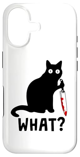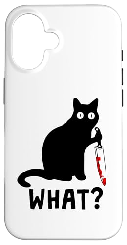 What? Murderous Black Cat Holding A Knife Funny Graphic Case for iPhone 16