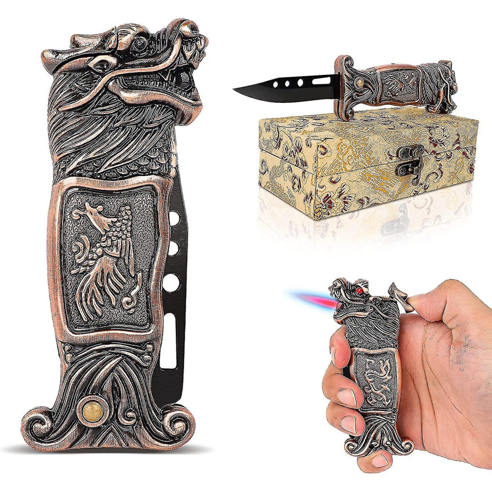 Jet Torch Dragon Lighter With A One-click Ejection Knife, Windproof Metal Cigar Lighter, Ideal Gifts For Festival, Butane Gas Refillable Cool Lighters