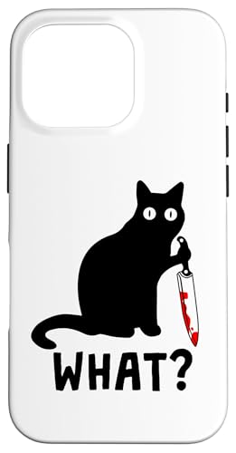 What? Murderous Black Cat Holding A Knife Funny Graphic Case for iPhone 16 Pro