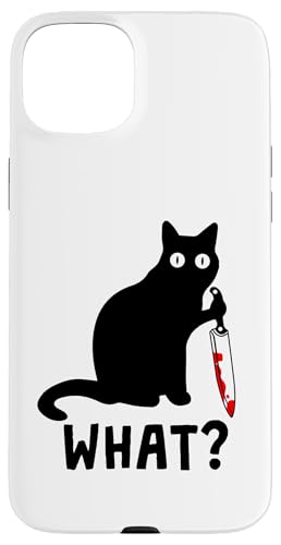 What? Murderous Black Cat Holding A Knife Funny Graphic Case for iPhone 15 Plus