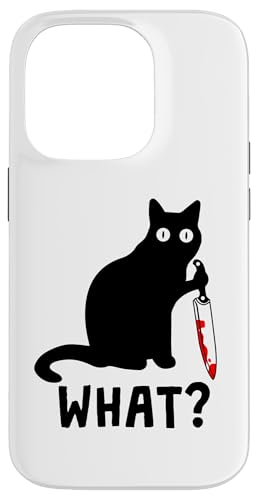 What? Murderous Black Cat Holding A Knife Funny Graphic Case for iPhone 14 Pro