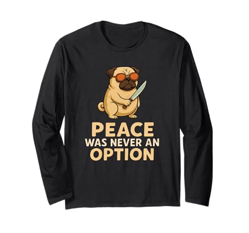 Funny Pug Chef with Knife and Sunglasses Humor Long Sleeve T-Shirt