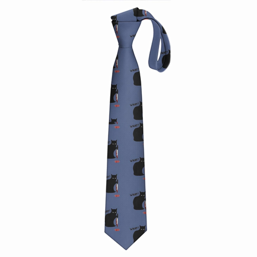 (Cat What Murderous Black Cat With Knife Halloween Gift=10397) Men's Tie Printed Skinny Tie Fashion Cool Necktie for Men, Casual Gentleman Novelry Fun
