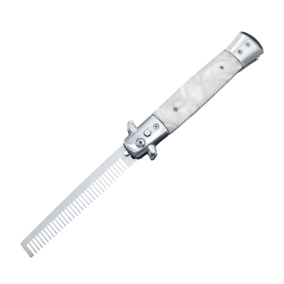 Folding Design Manual Hair Comb Stainless Steel Pocket Knife Automatic Push Button Brush Cool Look Multi Purpose Tool For Men And Pets For Nightclubs