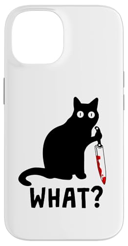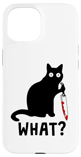 What? Murderous Black Cat Holding A Knife Funny Graphic Case for iPhone 15