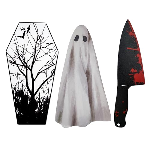 TwoDays Halloween Bookmarks, Cool Clear PVC Ghost Coffin and Knife Horror Bookmarks, Unique Gothic Spooky Gifts for Bookish, Scary Scream Creepy Stuff for Book Lovers Booktok. (6"x3", Set of 3)