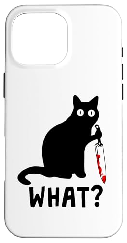 What? Murderous Black Cat Holding A Knife Funny Graphic Case for iPhone 16 Pro Max