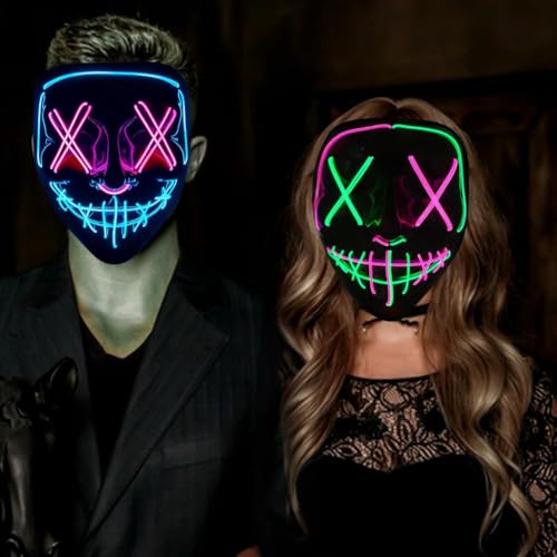 MIFKLMV Halloween Light up Mask, Scary Halloween LED Masks Costumes Mask Colourful Rave Full Face Masks & Party Role Playing Props Scary Face Cover Cool Fancy Dress for Kids and Adults-L