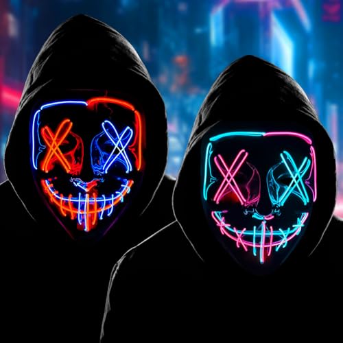 MIFKLMV Scary LED Halloween Mask, Halloween Light up Mask Cosplay Costumes Mask Colourful Rave Full Face Masks & Party Role Playing Props Scary Face Cover Cool Fancy Dress for Kids and Adults-B