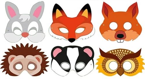 CARDBOARD THEMED MASKS - 12 PACK - Novelty Toys For Children Perfect Party Loot Prize Bag Filler Cool Stuff (Woodland Animals)