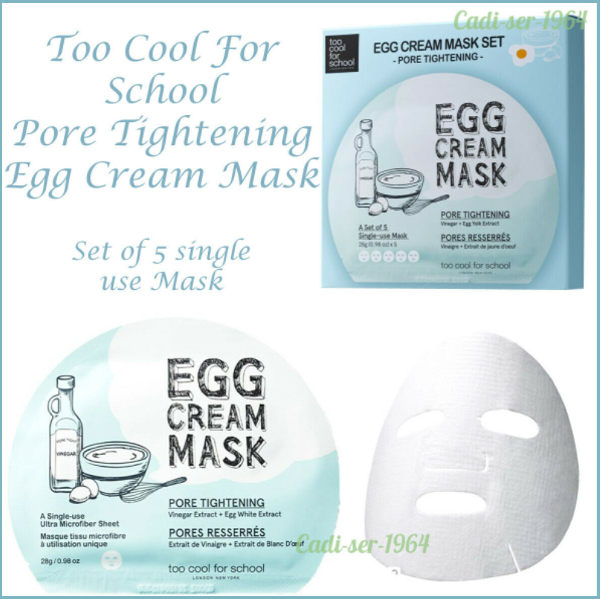 Too Cool For School Egg Cream Face Mask Pore Tightening 5 Masks NEW