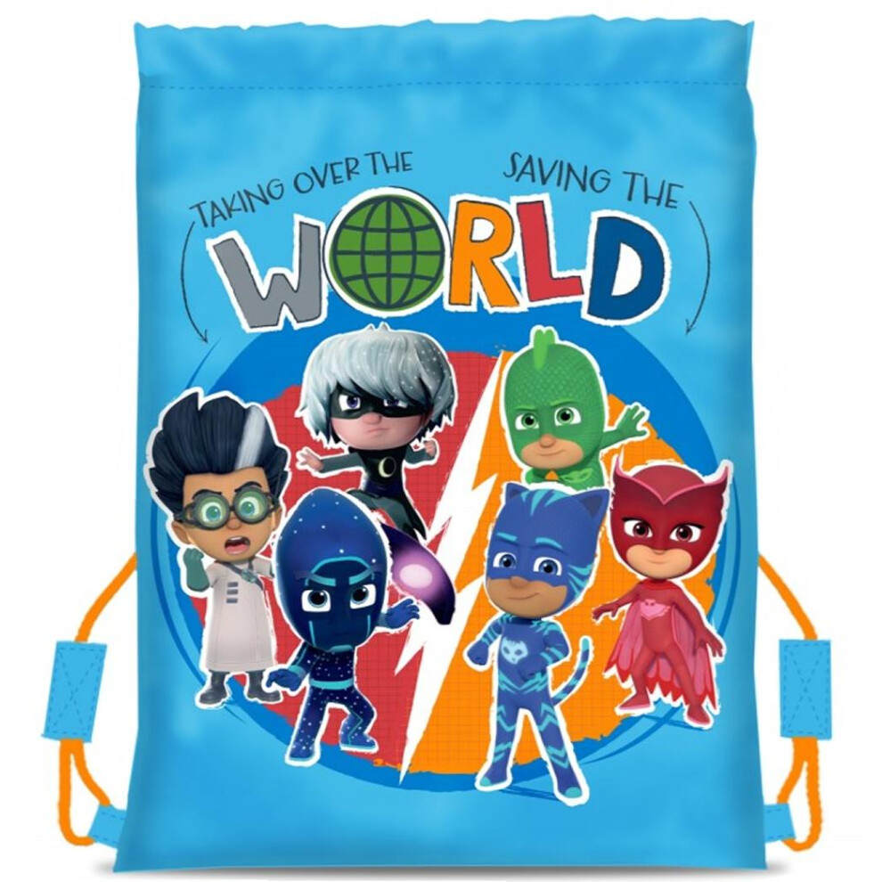 PJ Masks Drawstring Bag Pull String P.E. Gym School Swimming Cool Light Blue