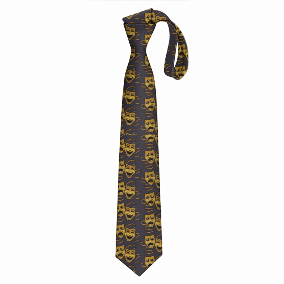 (Gold Comedy And Tragedy Theater Masks=10874) Men's Tie Printed Skinny Tie Fashion Cool Necktie for Men, Casual Gentleman Novelry Funny Suit Neck Tie