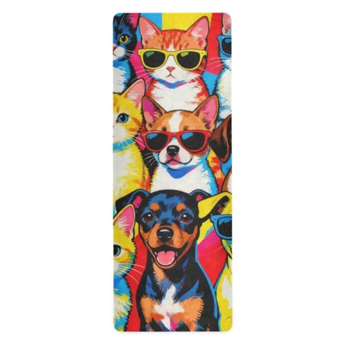 Colorful Cool Cats and Dogs Pop Art yoga mats in bulk for exercise printed, non slip, hot yoga mat towel with bag tapete para ejercicio 71x26 inches