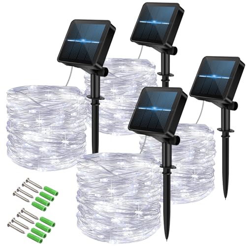 totpuc 120 LED Solar String Lights, 4 Packs 12 M/40 Ft Solar Powered Fairy Lights IP65 Waterproof, Copper Wire Decorative Lights with 8 Modes for Garden, Wedding, Party (Cool White)