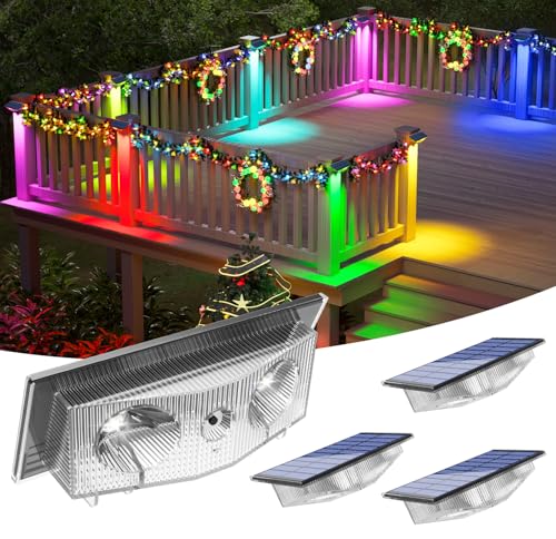 NATPOW RGB Solar Fence Lights, Dusk Till Dawn Outdoor Lights with Multi-Colour Changing, Warm&Cool White Garden Fence Lightling, 9 Mode LED Light for Yard Halloween Christmas Decoration(4Pack)