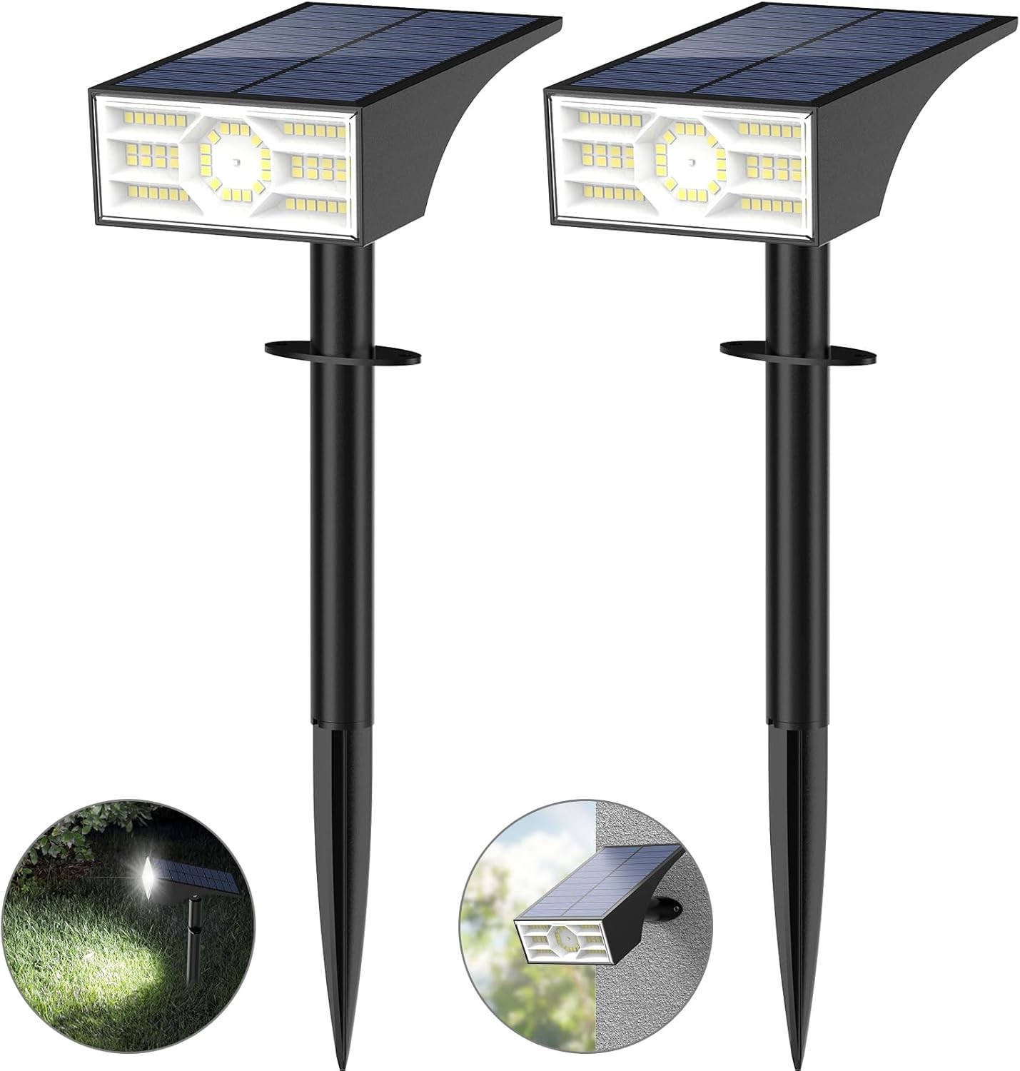 WELALO 57 LED Solar Landscape Spotlights, 2-in-1 Waterproof Solar Powered Garden Lights, 6500K 800LM 3 Brightness Modes Solar Spot Lights Outdoor for Garden, Dusk to Dawn (Cool White, 2 Pack)