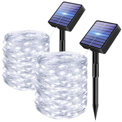 btfarm 2 Pack Solar String Lights Outdoor Garden Waterproof, 15M/50FT 150 LED Solar Powered Fairy Lights, 8 Modes Copper Wire Lights for Patio Yard Party Christmas Decorations, Cool White