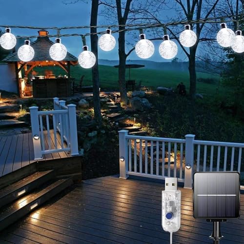Bollengold 60 LED Solar String Lights Waterproof, 26FT 8 Modes USB Powered Outdoor Fairy Lights for Patio,2 in 1 Solar Garden Lights, Gazebo,Wedding Decorations,Party (Cool White)