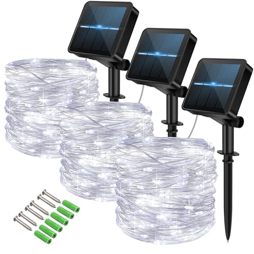 totpuc Solar String Lights Outdoor, 3 Packs 12 M 120 LED Fairy Light Solar Powered, Waterproof String Light, Bright Lighting Outside Indoor Garden Decorations (Cool White)