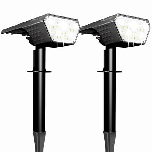 Satucol 2pack Solar Spot Lights Outdoor,Auto On/Off Solar Lights Outdoor Waterproof IP65,2-in-1 Solar Powered Outdoor Landscape Lighting,Solar Lights for Outside Yard Garden Pathway (Cool White)