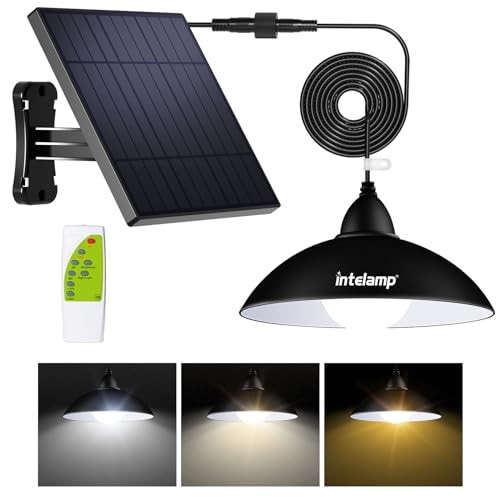 intelamp Solar Shed Light Remote Control, Solar Pendant Lights Outdoor Indoor, Cool White, Neutral, Warm White, 16.4FT Cord, Outdoor Gazebo Lights for Garden Courtyard Barn Balcony Corridor