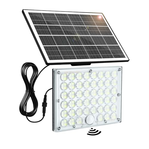LOTMOS Solar Lights Outdoor, 342LED Remote Solar Security Lights Outdoor Motion Sensor, 3 Modes Garden Light Solar Powered Waterproof Pir Flood Lighting for Yard Shed Garage Outside,Cool White