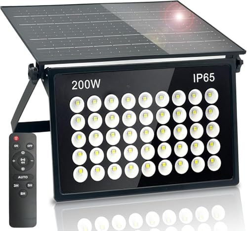 Indmird 200W Solar Security Lights Outdoor, Solar Wall Light IP65 Waterproof 6500K Cool White Flood Light Outdoor for Garden Garage Wall Yard