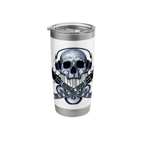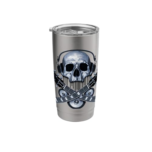 Skull Headphones Guitars Speakers Cool Rocker Metal Vintage Stainless Steel Insulated Tumbler