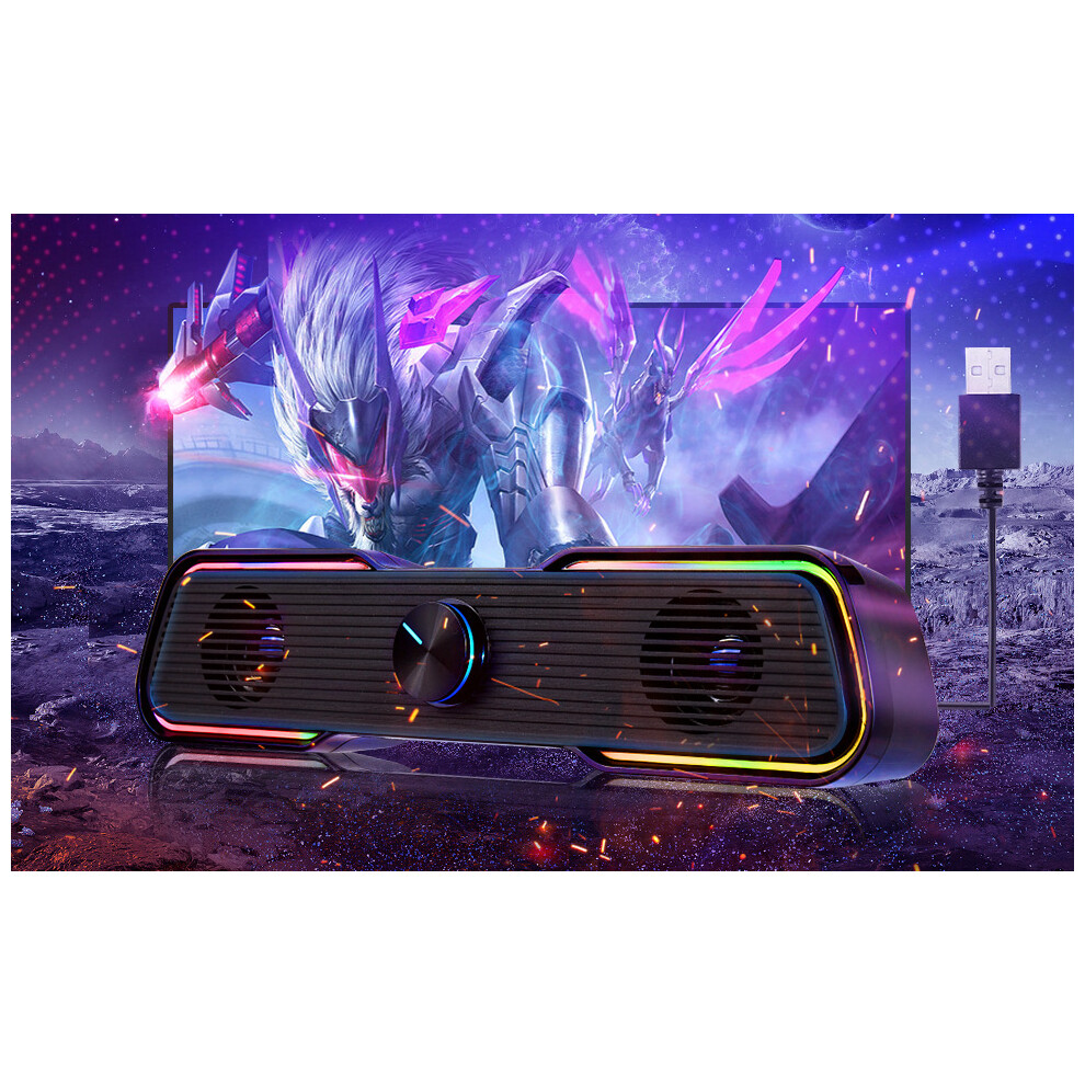 Smalody Computer Sound bar, PC Speakers, USB Soundbar, Gaming Speaker with Cool LED Lights, Multimedia Speaker Perfect for PC Games,Computer, Des
