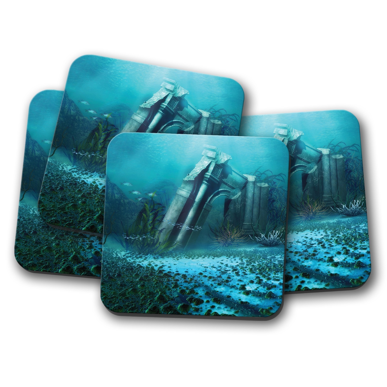 4 Set - Amazing Underwater Ruins Coaster - Atlantis Water Dive Cool Gift #14031