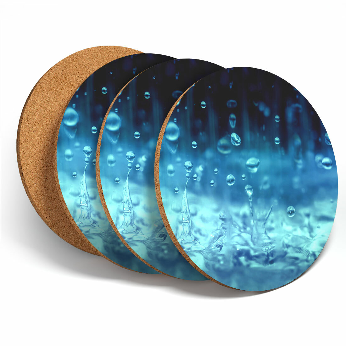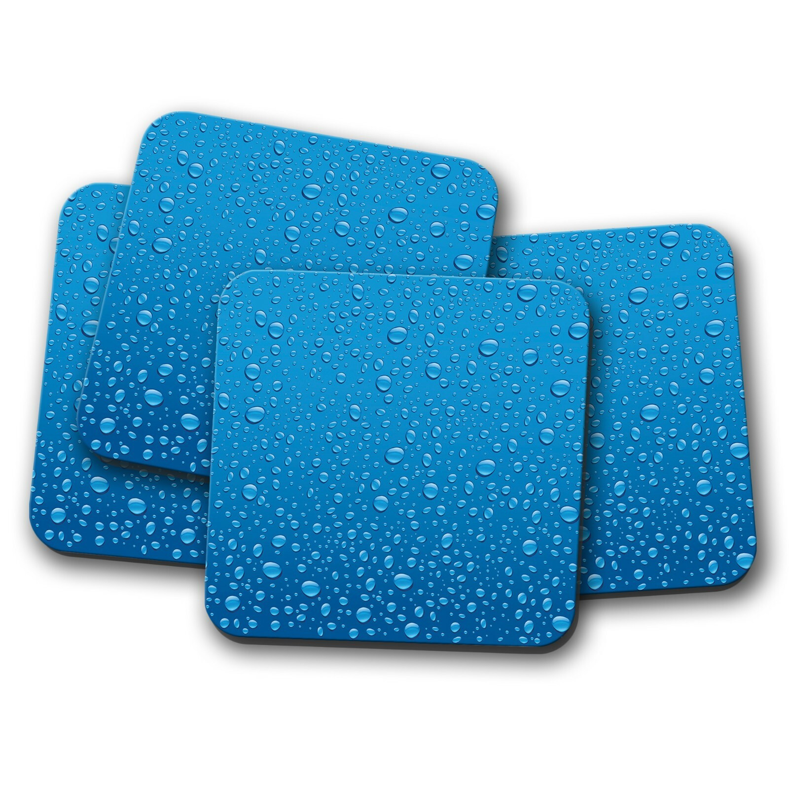 4 Set - Blue Water Droplets Coaster - Drops Condensation Splash Cool Gift #12814