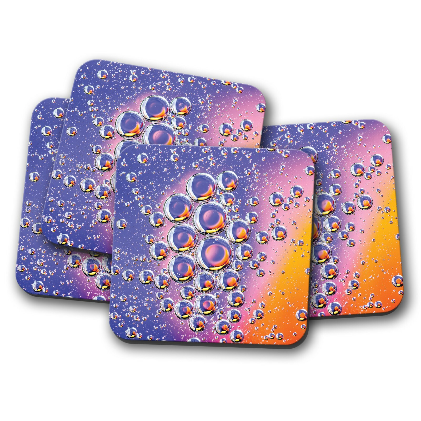 4 Set - Cool Water Droplets Coaster - Purple Drops Pink Bubbles Girl Gift #16759