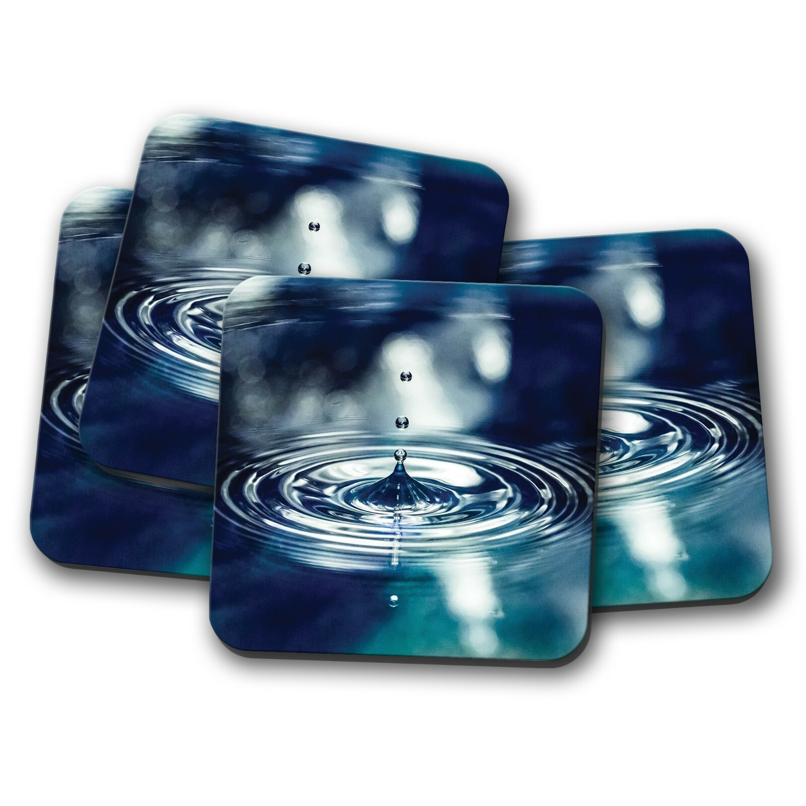 4 Set - Water Droplet Coaster - Drops Ripple Drip Cool Drop Splash Gift #16965