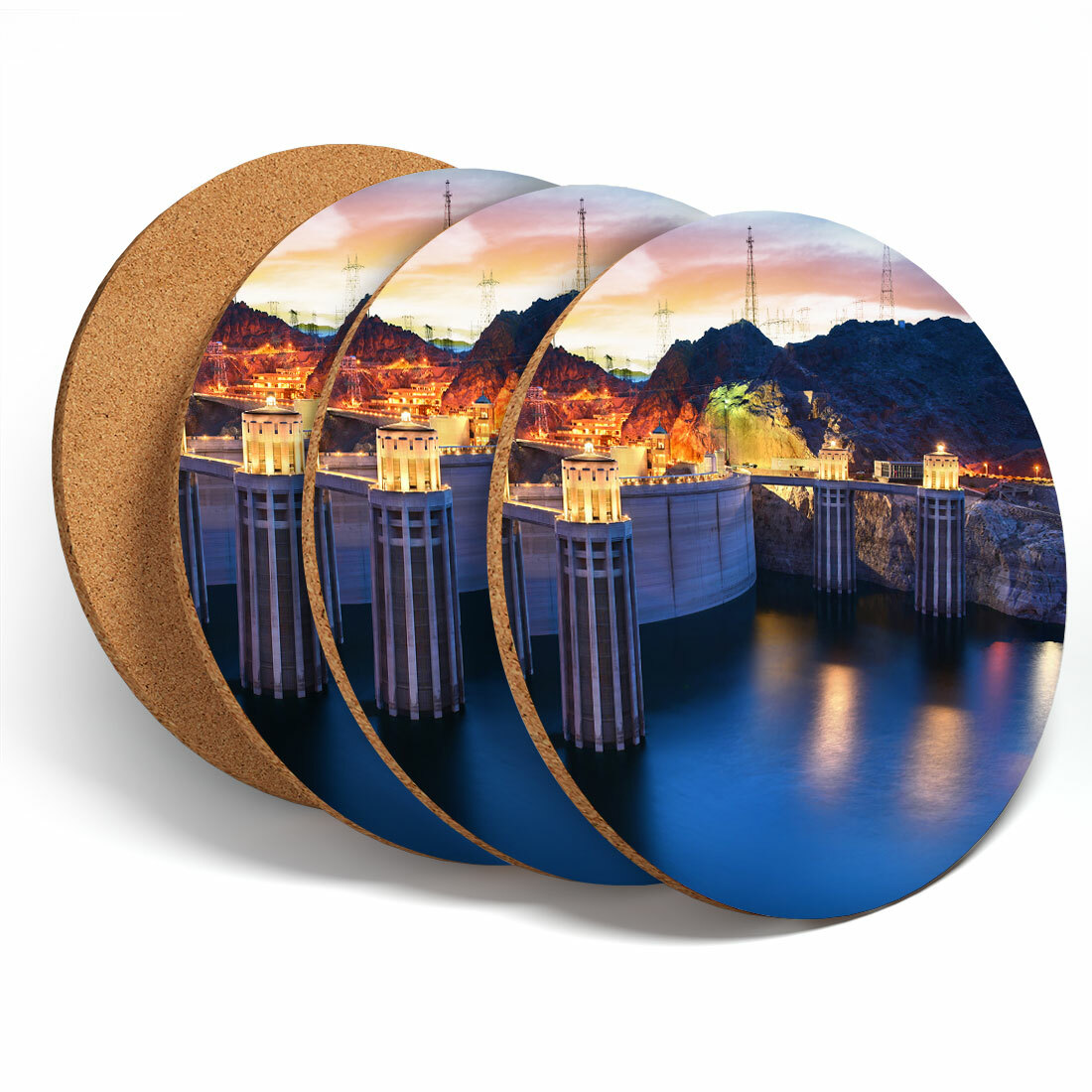 4 Set - Cool Hoover Dam Nevada USA Water Coasters - Kitchen Drinks Gift #3355