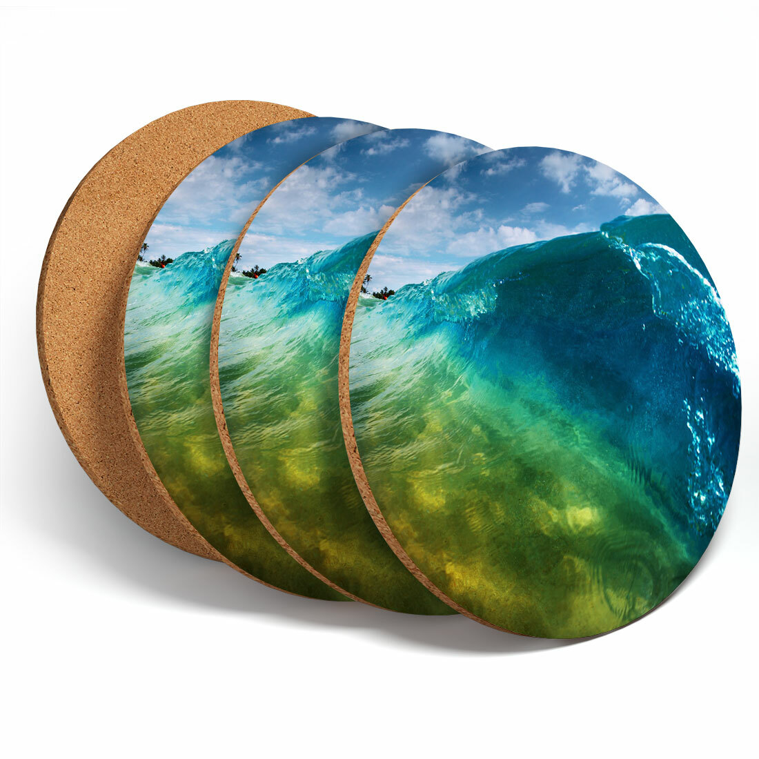 4 Set - Cool Surf Beach Wave Water Coasters - Kitchen Drinks Coaster Gift #3730