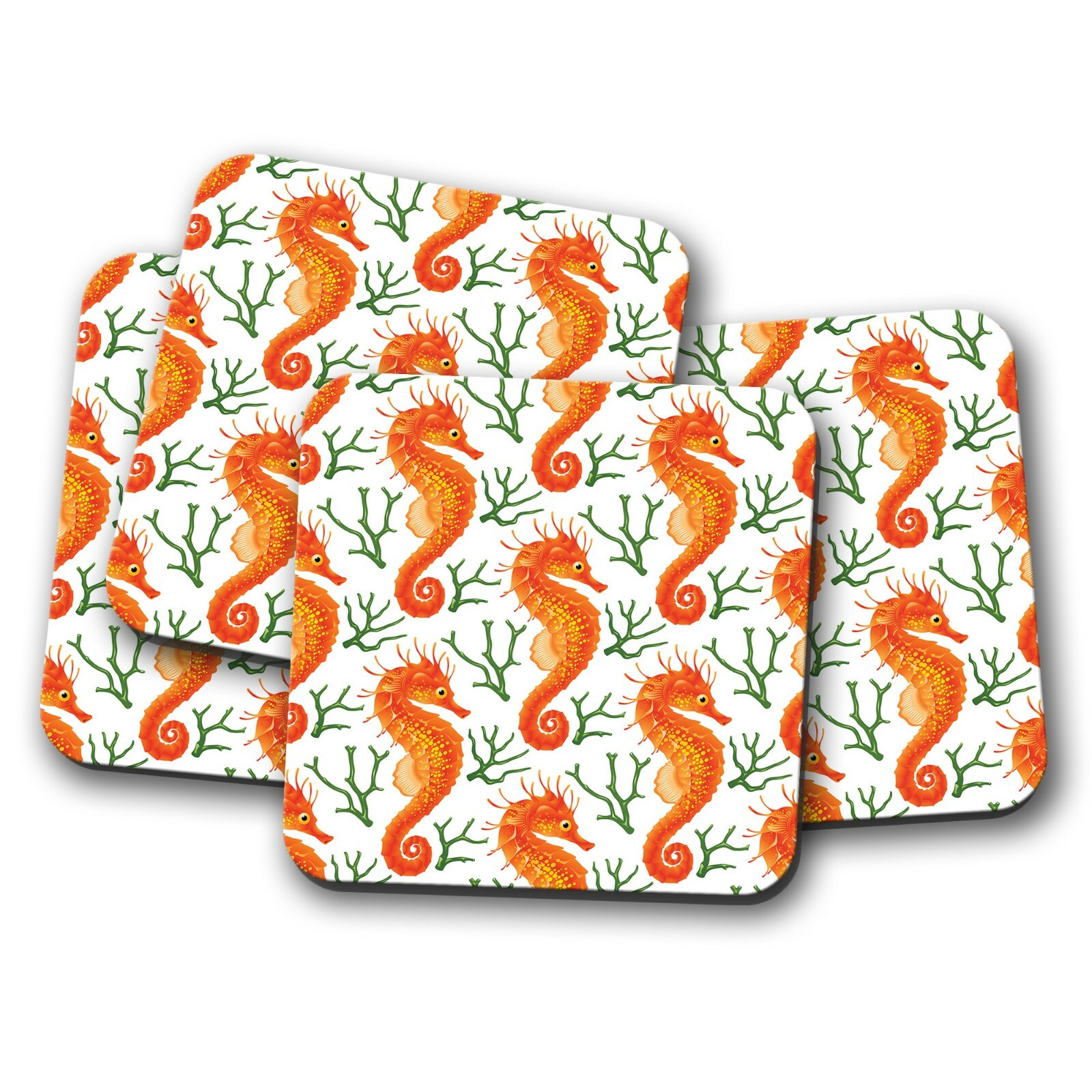 4 Set - Beautiful Seahorse Coaster - Reef Fish Ocean Cool Fun Water Gift #15801