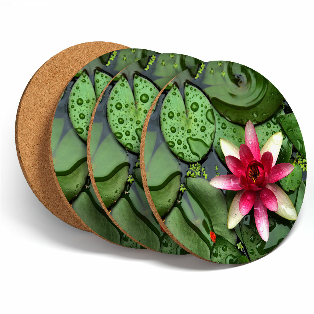 4 Set - Water Lily Flower Pond Coasters- Kitchen Drinks Coaster Cool Gift #12200