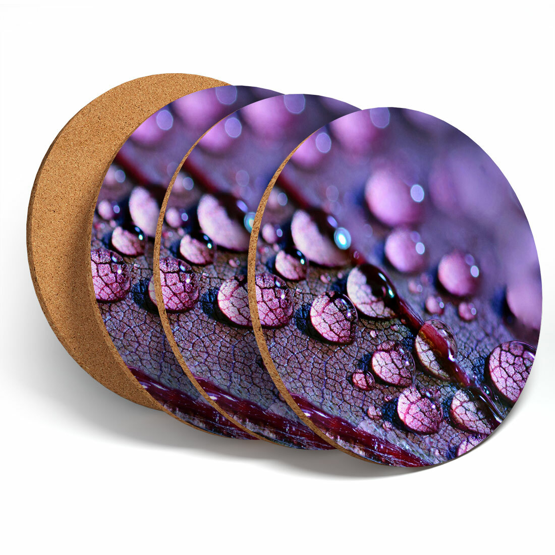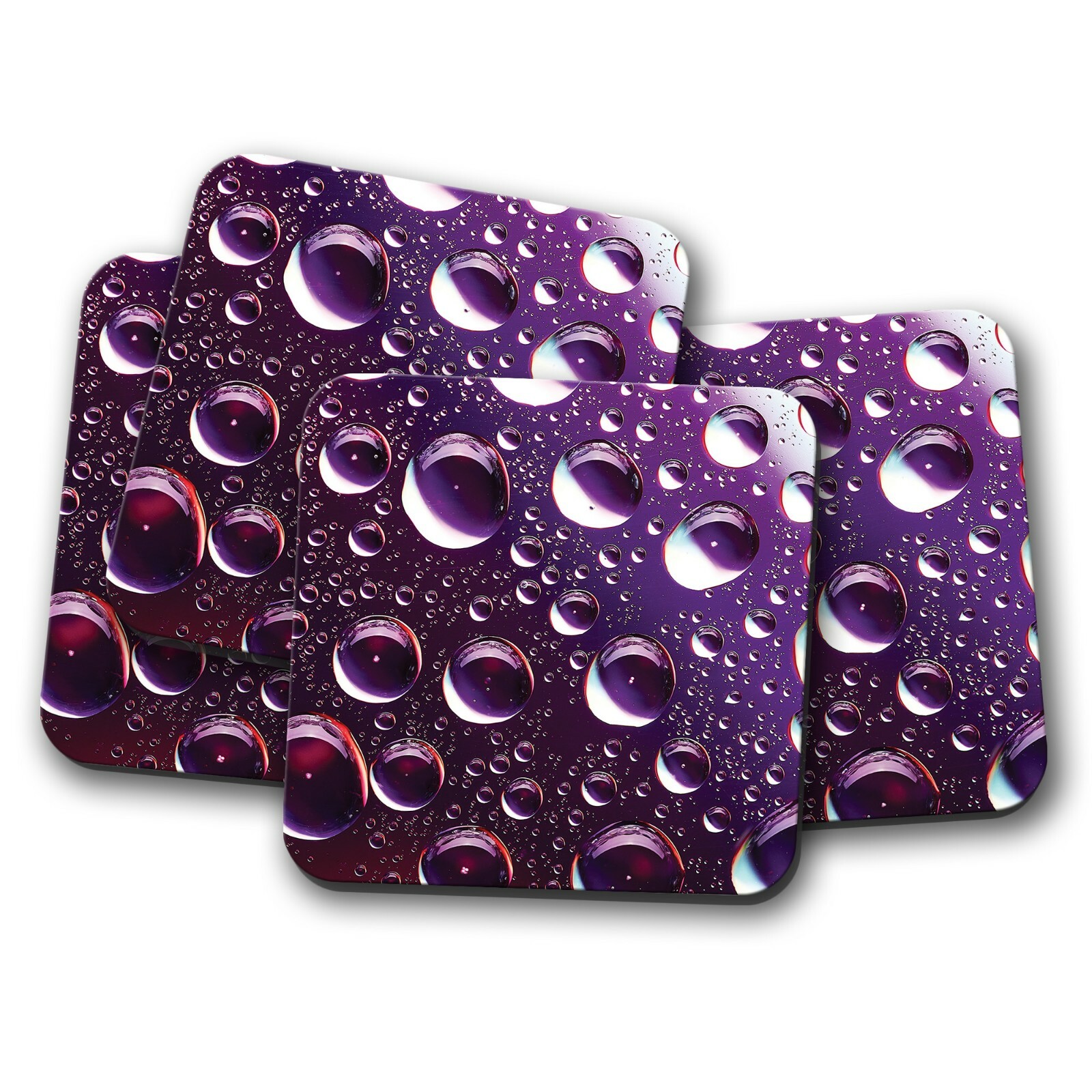 4 Set - Cool Water Droplets Purple Coasters - Kitchen Drinks Coaster Gift #13112