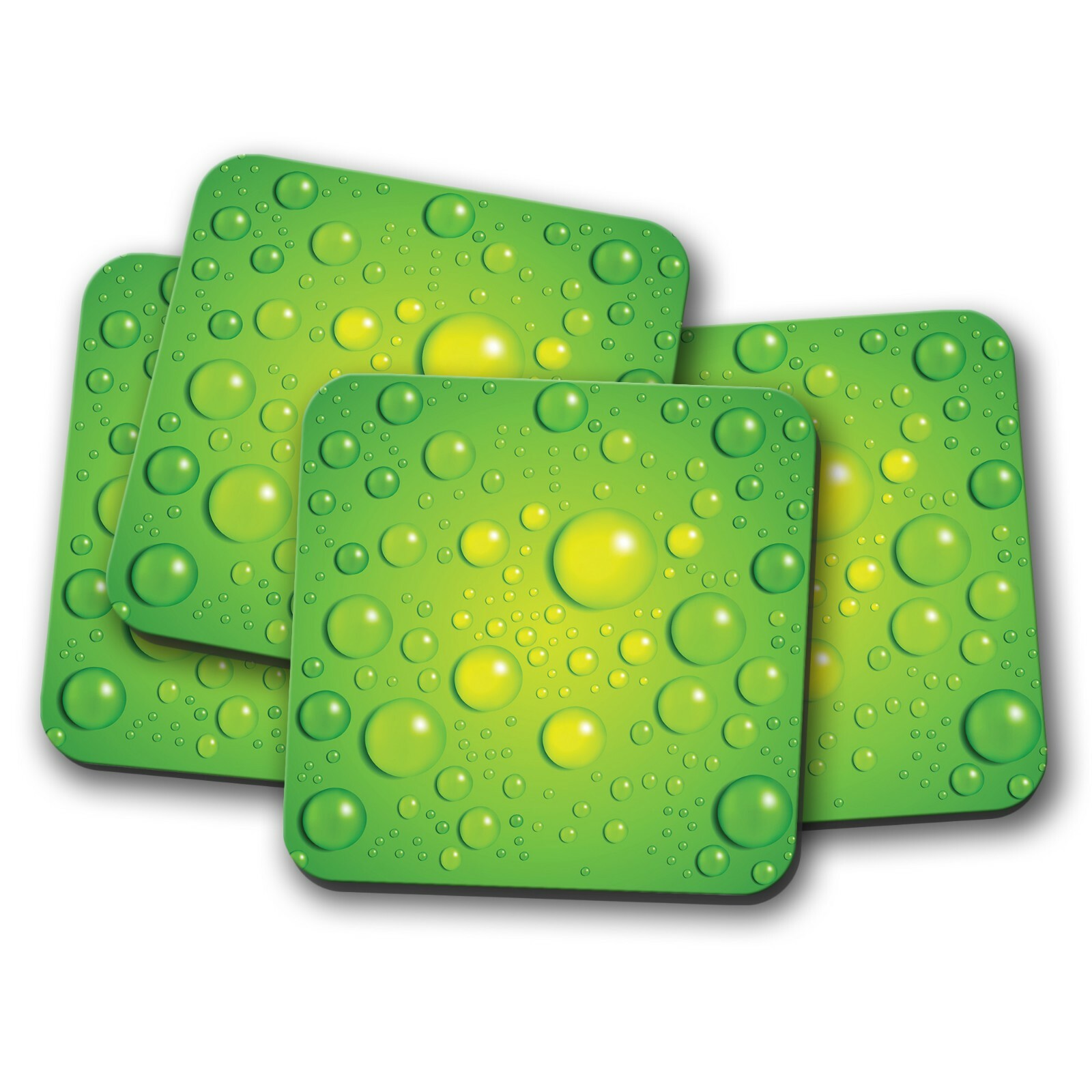 4 Set - Water Drops On Green Coaster - Droplets Bubbles Cool Splash Gift #12813