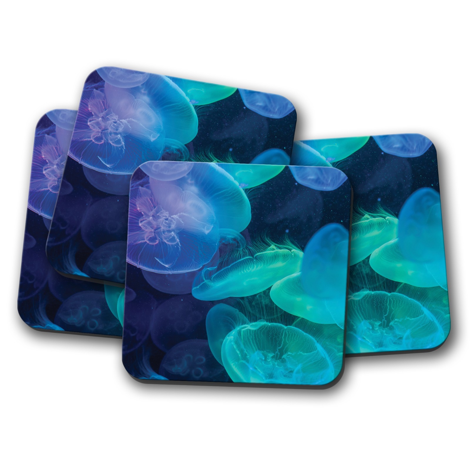 4 Set - Beautiful Jellyfish Drinks Coaster - Jelly Fish Water Cool Gift #8379